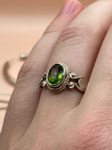 Ručně vyrobený prsten ze stříbra 925 se vsazeným olivínem krásné barvy