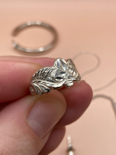 Ručně vyrobený prsten ze stříbra 925 s vypilovaným vzorem karetních žaludů