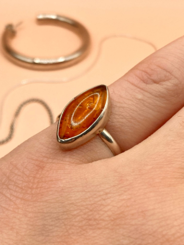 Ručně vyrobený prsten ze stříbra 925 se vsazeným jantarem