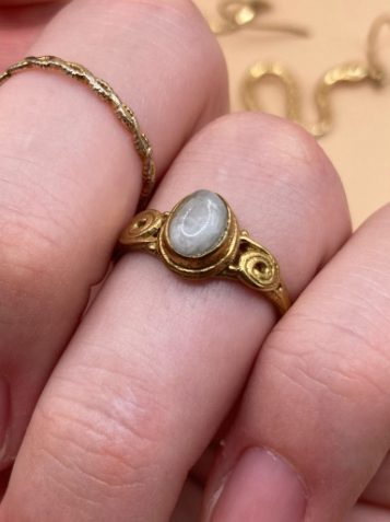 🦢 Prsten je vyroben z mosazi se vsazeným měsíčním kamenem.