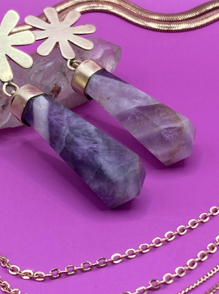 🦢Náušnice jsou vyrobeny z mosazi s vloženými ametysty.