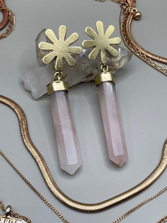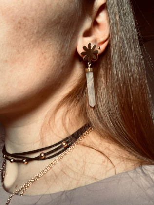 🦢Náušnice jsou vyrobeny z mosazi s vloženými růženíny.