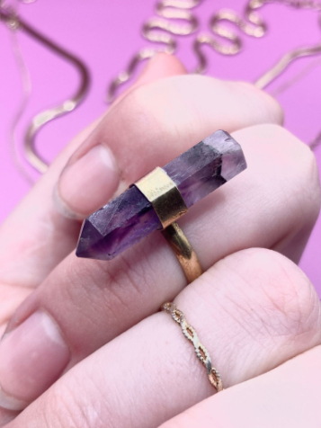 🦢 Prsten je vyroben z mosazi se vsazeným ametystem.