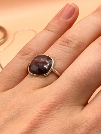 Ručně vyrobený prsten ze stříbra 925 se vsazeným fialovým rubínem
