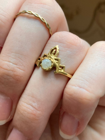 🦢 Prsten je vyroben z mosazi se vsazeným měsíčním kamenem.