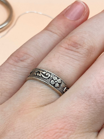Ručně vyrobený prsten ze stříbra 925 s květinovými vzory