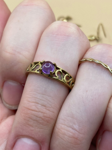🦢 Prsten je vyroben z mosazi se vsazeným ametystem.