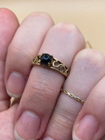 🦢 Prsten je vyroben z mosazi se vsazeným onyxem.