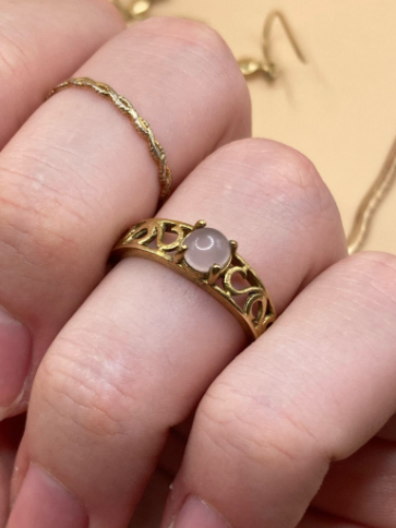 🦢 Prsten je vyroben z mosazi se vsazeným růženínem.
