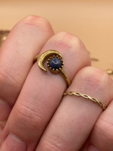 🦢 Prsten je vyroben z mosazi se vsazeným sodalitem.