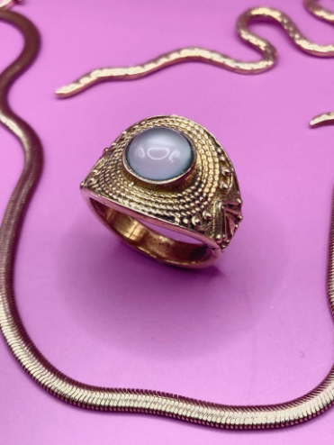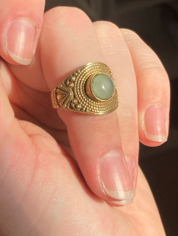 🦢 Prsten je vyroben z mosazi se vsazeným jadeitem.