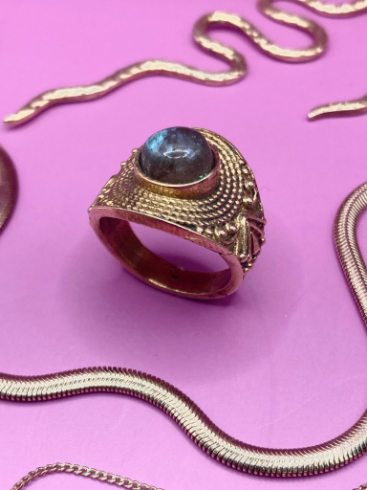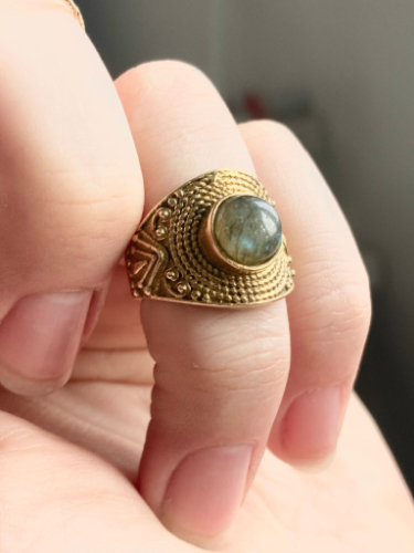 Ručně odlitý prsten z mosazi se vsazeným labradoritem