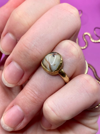 🦢 Prsten je vyroben z mosazi se vsazeným achátem.