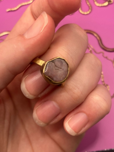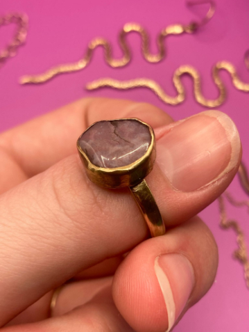 🦢 Prsten je vyroben z mosazi se vsazeným achátem.