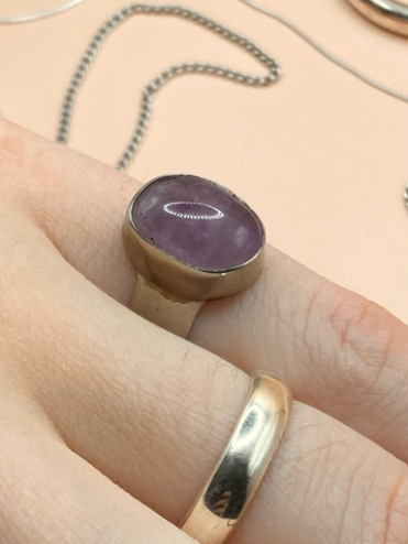 🦢 Prsten je vyroben z bílé mosazi se vsazeným ametystem.
