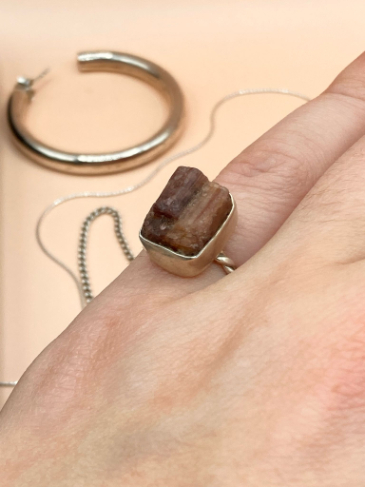 Ručně vyrobený prsten ze stříbra 925 se vsazeným surovým, fialovým rubínem