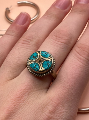 🦢 Prsten je odlitý z bílé mosazi s tyrkysy a korály.