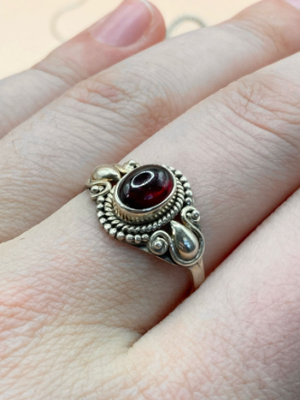 Ručně vyrobený prsten ze stříbra 925 se vsazeným tmavě růžovofialovým rubínem